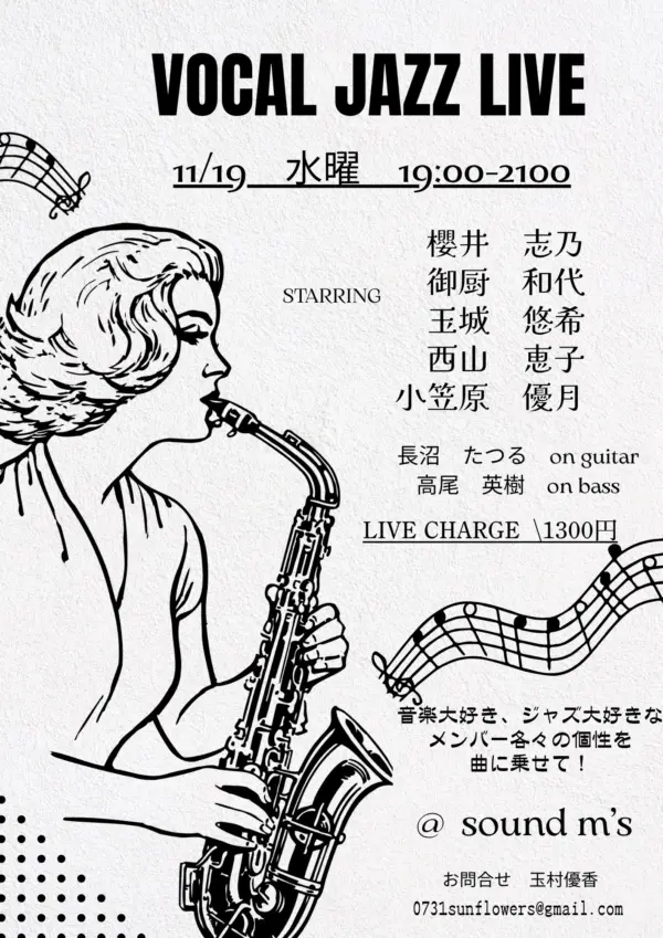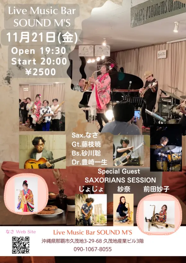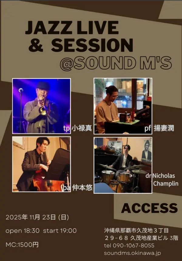 ★ジャズセッション・開場:19時30分/開演:20時・MEMBER=村松志門(sx)/佐久本ジョーイチ(gt)/上原淳(bs)/金城吉雄(dr)・会場=Live Music Bar SOUND M’S