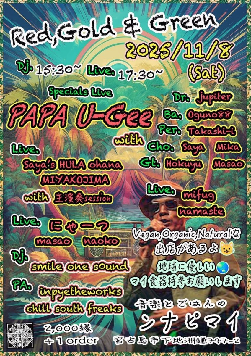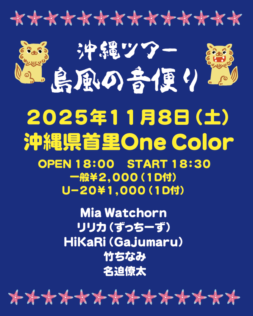 ★ulma sound junction pre. ISHIGAKI FEST 2025・開演:15時~終演:21時30分・出演=ulma Sound Junction / 打首獄門同好会 / きいやま商店 / アイリフドーパ / As Alliance・O.A.:吉美四季・MC:横目兄弟・会場=舟蔵の里(石垣市新川2468-1)