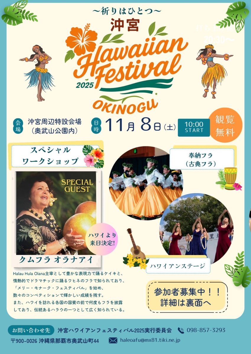 ★石垣島フラフェスティバル2025・第一会場:12時30分~15時30分・第二会場:13時~17時・第一会場=新栄公園(石垣市新栄町3−1)・第二会場=石垣市民会館・中ホール