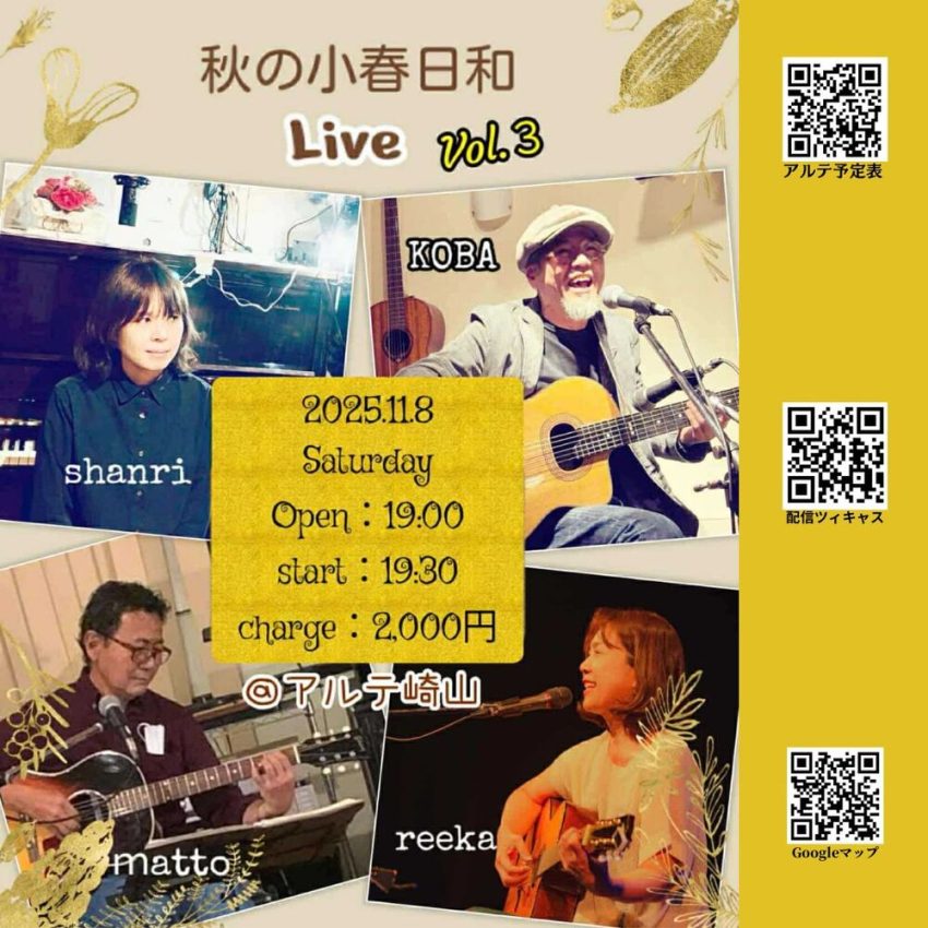 ★山木康世 Live Library 2025 沖縄秋宵 季節の夕暮れ・開場:18時30分/開演:19時・会場=Crossover Cafe 614