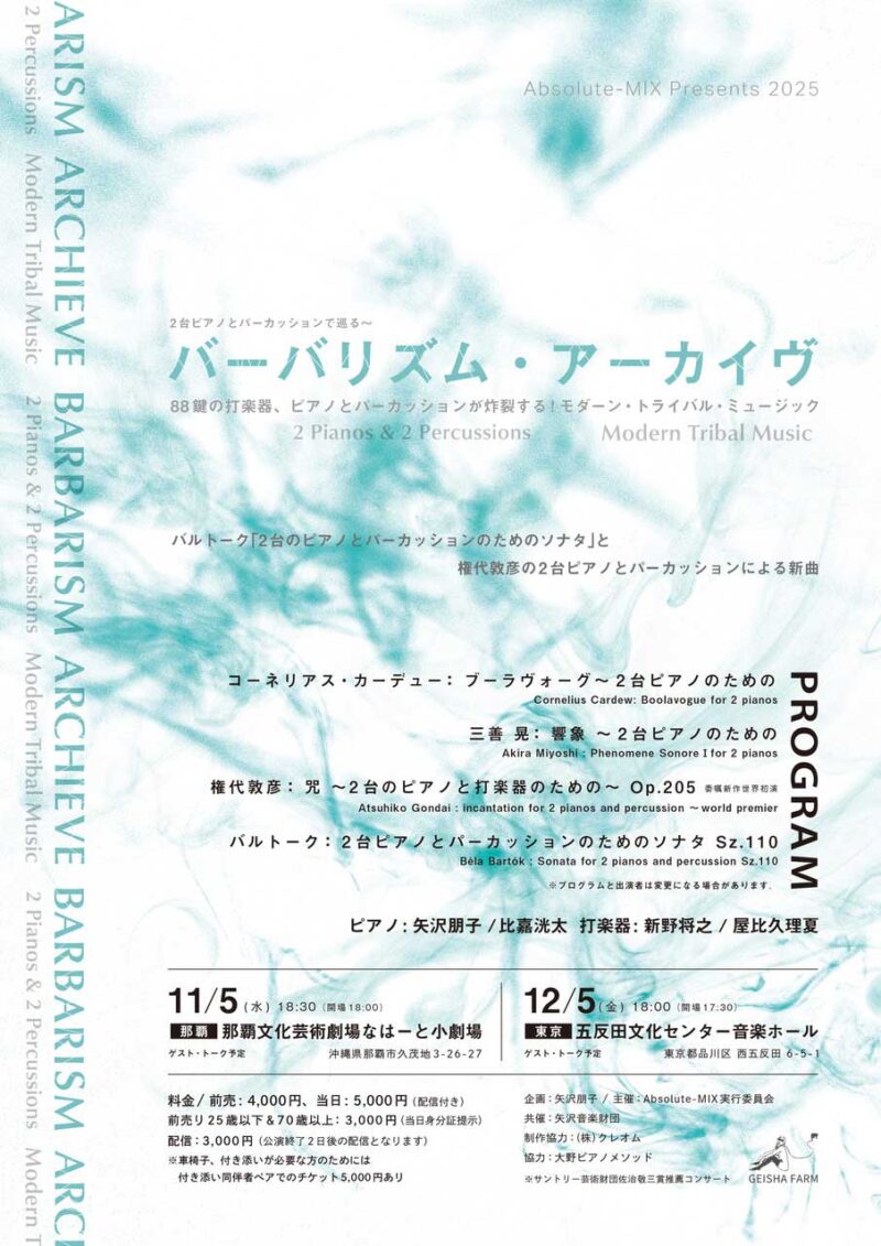 ★ピアノバトル「アンドレアス vs. ポール」・開場:16時/開演:17時・出演=ポール・シビス / アンドレアス・カーン [司会]朝岡聡・会場=沖縄コンベンションセンター劇場棟