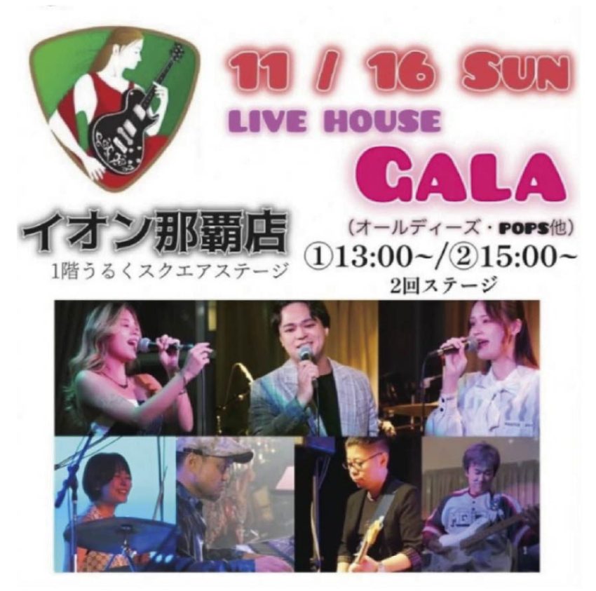★GALA OLDIES LIVE・開場:18時/開演:19時~・他4回・出演=Gt. Taka、Ba. Aki、Ds. Misao、Key.Yusuke、Key.Ayaka Vo.mika、miyuki、yu-ka・会場=Italian restaurant & Live house Gala