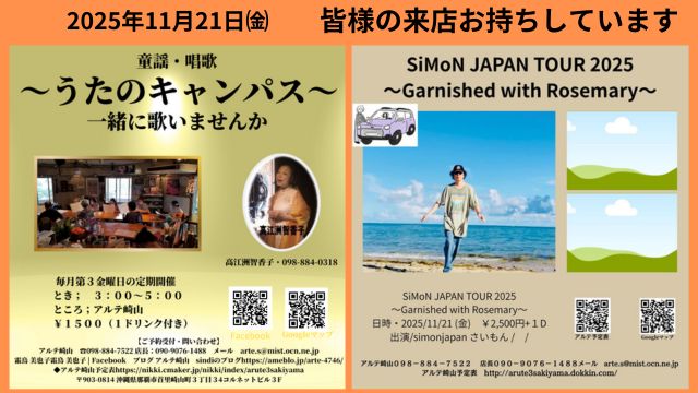 ★アルテ崎山周年祭・開場:18時30分/開演:19時・会場=アルテ崎山