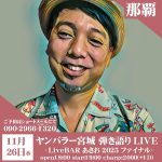 ★国頭村観光大使の弾き語りライブをお楽しみください♪・ヤンバラー宮城LIVE・開場:18時/開演:19時・会場=LIVE BAR あさお