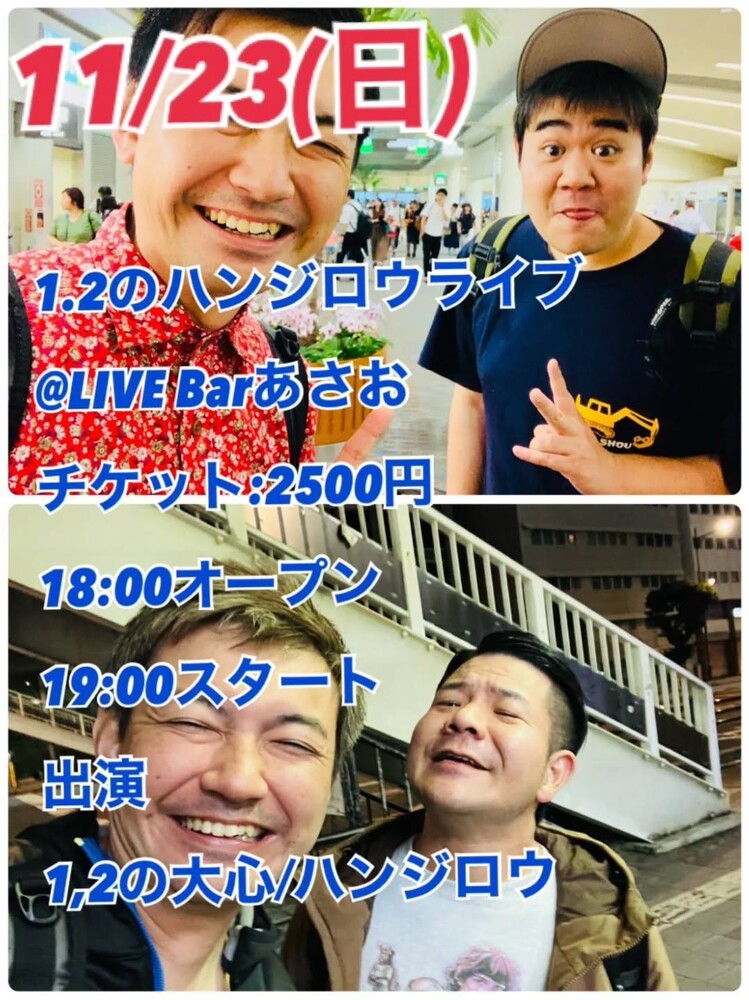 ★ガチャゆきお(佐藤幸雄・上地gacha一也)・開場:23時30分/開演:24時・出演=佐藤幸雄[vocal.guitar]、上地gacha一也[vocal.double-bass]・会場=groove
