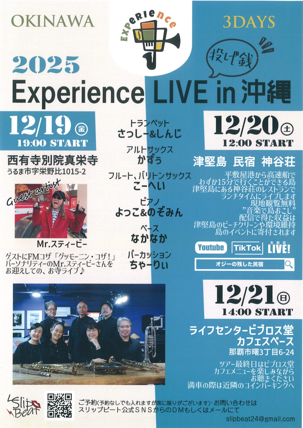 ★DYNAMITES OLDIES LIVE(※2ステージ入れ替え制)・開場:19時30分~・メンバー=Guitar.SHUN、Bass.SEIWA、Drums.HITOSHI、Keyboard.DAIchan、Sax.JERRY、Vo.SHIRO、YUUMI、NANA・会場=GOLD DISC OKINAWA