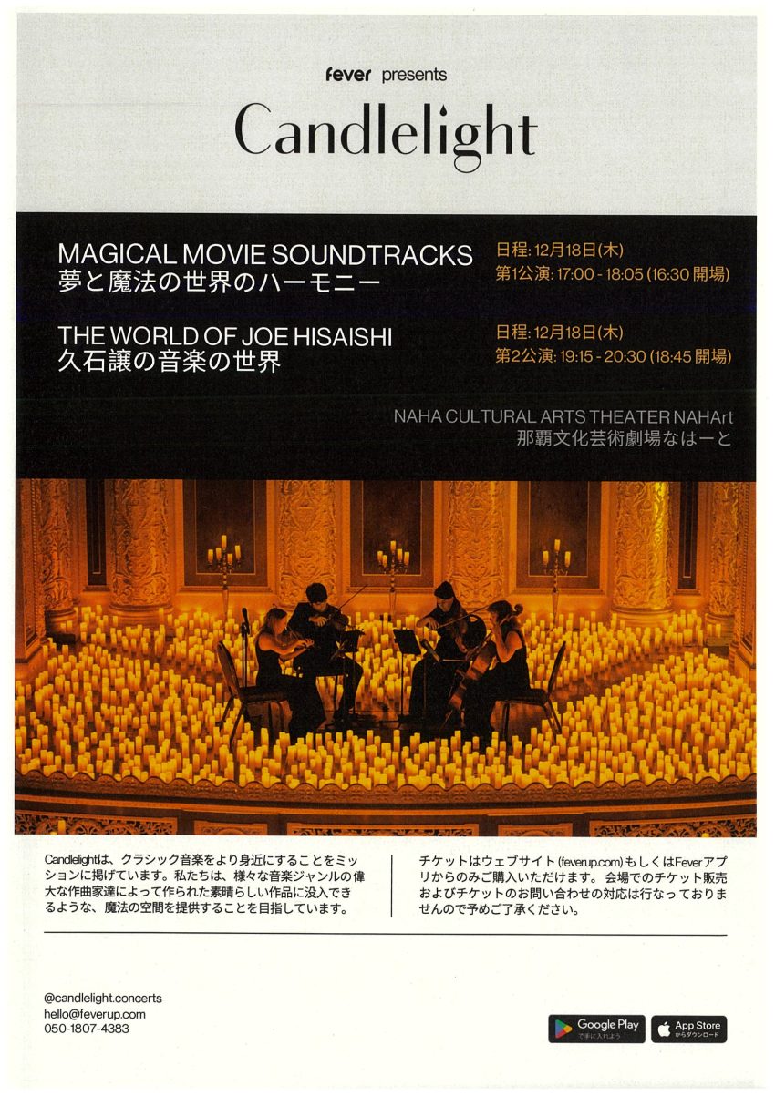 ★沖縄こどもの国 クリスマスファンタジー・大晦日カウントダウンステージプログラム・開演:16時30分~終演:21時20分・出演=大道芸 うたのおねーたんピッピ、Ayapanda&なかきすRAINBOW(うるま市前原公民館キッズチアサークル)、EXPG STUDIO OKINAWA、島唄やーにんじゅ〜与座ファミリー〜、WHAT’S UP AKEMI DANCE SCHOOL、Teechi、島バナナーズ、前川真悟(かりゆし58) CHAMP-ROOTS・会場=沖縄こどもの国