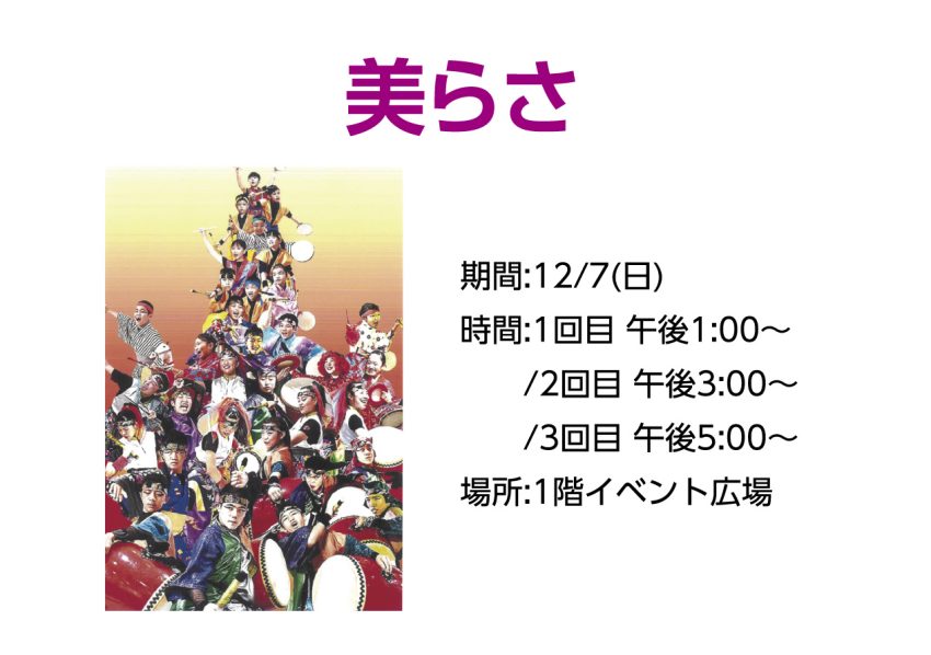 ★美らさ・【1回目】開演:13時~・【2回目】開演:15時~・【3回目】開演:17時~・会場=イオン南風原店1階 イベント広場