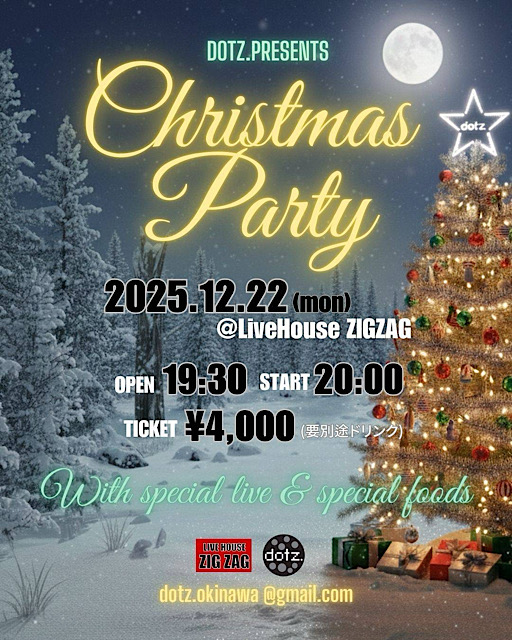 ★沖縄こどもの国 クリスマスファンタジー・クリスマスファンタジーステージプログラム・開演:15時^終演:21時20分・出演=大道芸 BoxTheater HANE、Vertex(具志川高校ダンス部)、CACHAS Entertainment School、恐竜ショー、体験型ジャンボリミキー(CACHAS)、那覇太鼓、Dream sister’s、金城しおり・会場=沖縄こどもの国