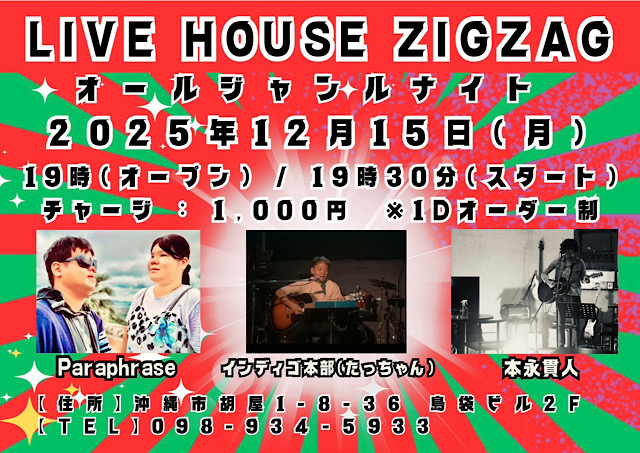 ★Willie’s Band Live・開場:20時/開演:21時・出演=Max、Willie 仲門、KEN ちゃん(下地鍵一)・会場=ライブハウスZIGZAG