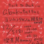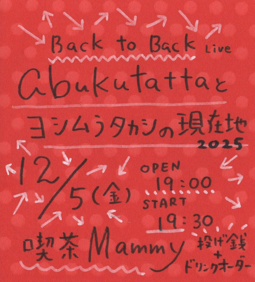 ★abukutattaとヨシムラタカシの現在地2025・開場:19時/開演:19時30分・出演=ヨシムラタカシ他・会場=喫茶mammy(那覇市牧志3-9-30)