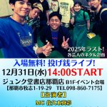 ★DYNAMITES OLDIES LIVE COUNT DOWN PARTY・開演:20時~25時・メンバー=Guitar.SHUN、Bass.SEIWA、Drums.HITOSHI、Keyboard.DAIchan、Sax.JERRY、Vo.SATORU、AICHAN・会場=GOLD DISC OKINAWA