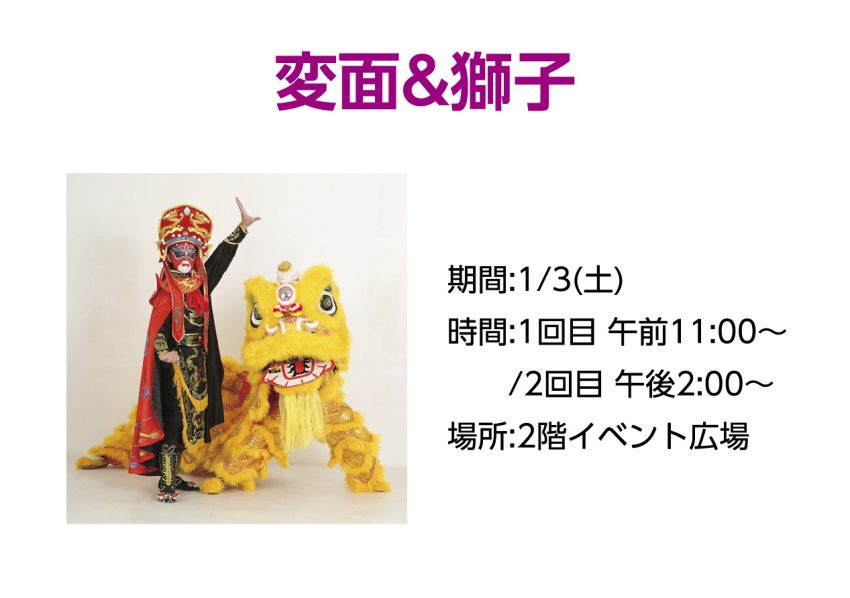 ★変面&獅子・【1回目】開演:11時~・【2回目】開演:14時~・会場=イオン具志川店・2階イベント広場