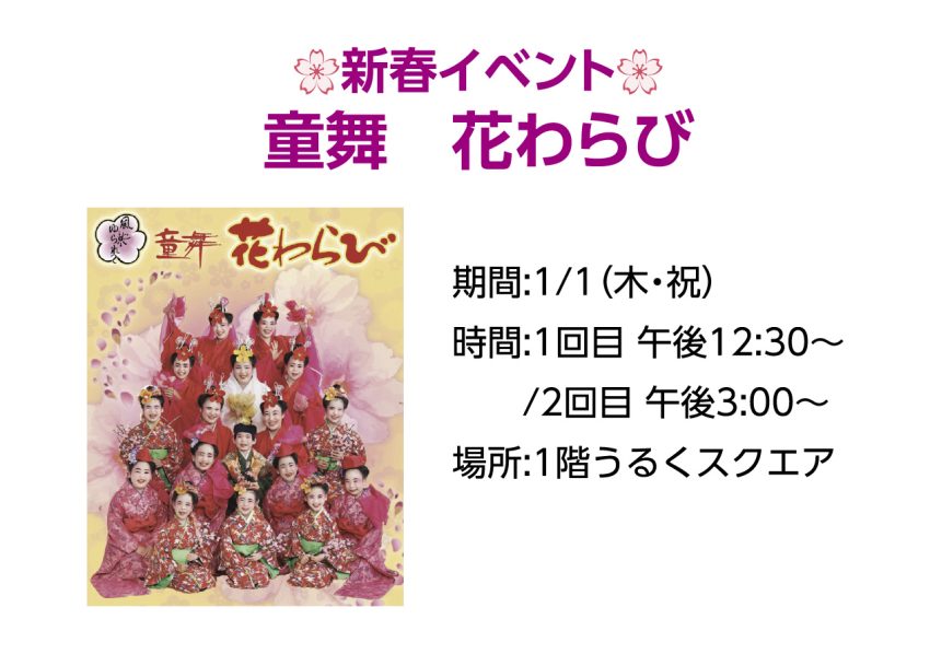 ★新春イベント 童舞 花わらび・【1回目】開演:12時30分~・【2回目】開演:15時~・会場=イオン那覇店1階うるくスクエア
