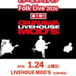 ★いーどぅしサーサー!イヤサーサー!2026 in OKINAWA・開場:14時30分/開演:15時30分・出演=いーどぅし・会場=LIVE HOUSE MOD’S
