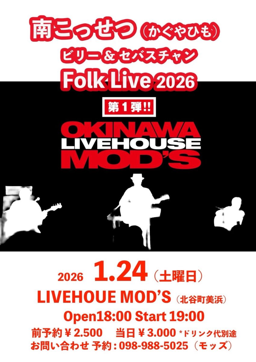 ★南こっせつ(かぐやひも)ビリー&セバスチャン Folk Live 2026・開場:18時/開演:19時・会場=LIVE HOUSE MOD’S