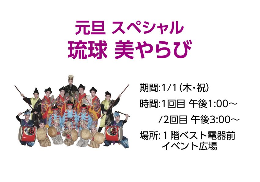 ★元旦スペシャル 琉球 美やらび・【1回目】開演:13時~・【2回目】開演:15時~・会場=イオン名護店1階ベスト電器前イベント広場