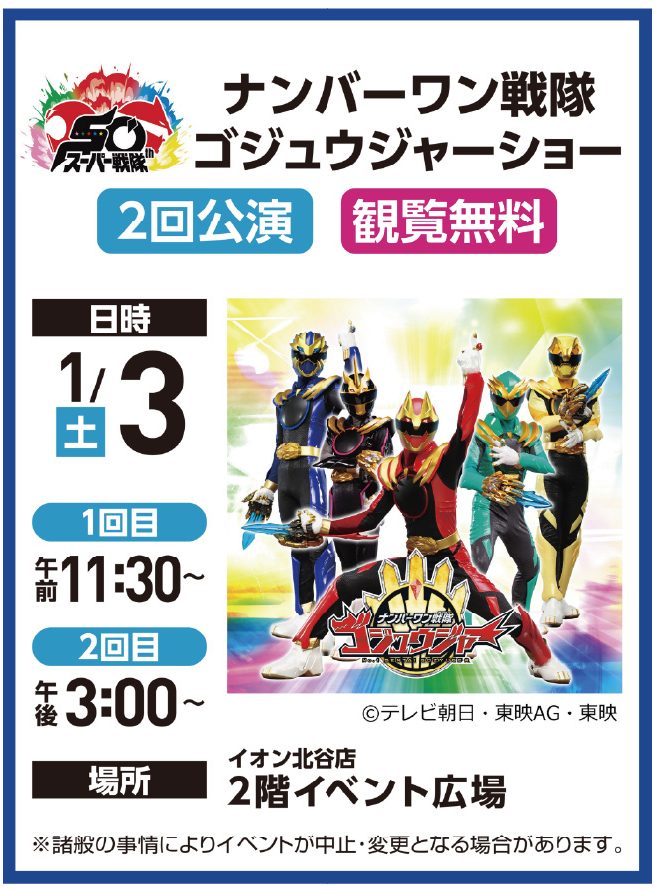 ★ナンバーワン戦隊 ゴジュウジャー ショー@北谷店・【1回目】開演:11時30分~・【2回目】開演:15時~・会場=イオン北谷店・2階 イベント広場