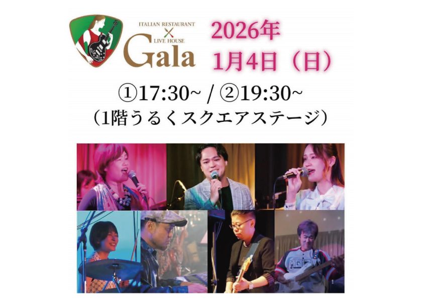 ★GALA OLDIES LIVE・開場:18時/開演:19時~・他4回・出演=Gt. Taka、Ba. Aki、Ds. Misao、Key.Yusuke、Key.Ayaka Vo.mitsuki、umi、miyuki、shizuku・会場=Italian restaurant & Live house Gala