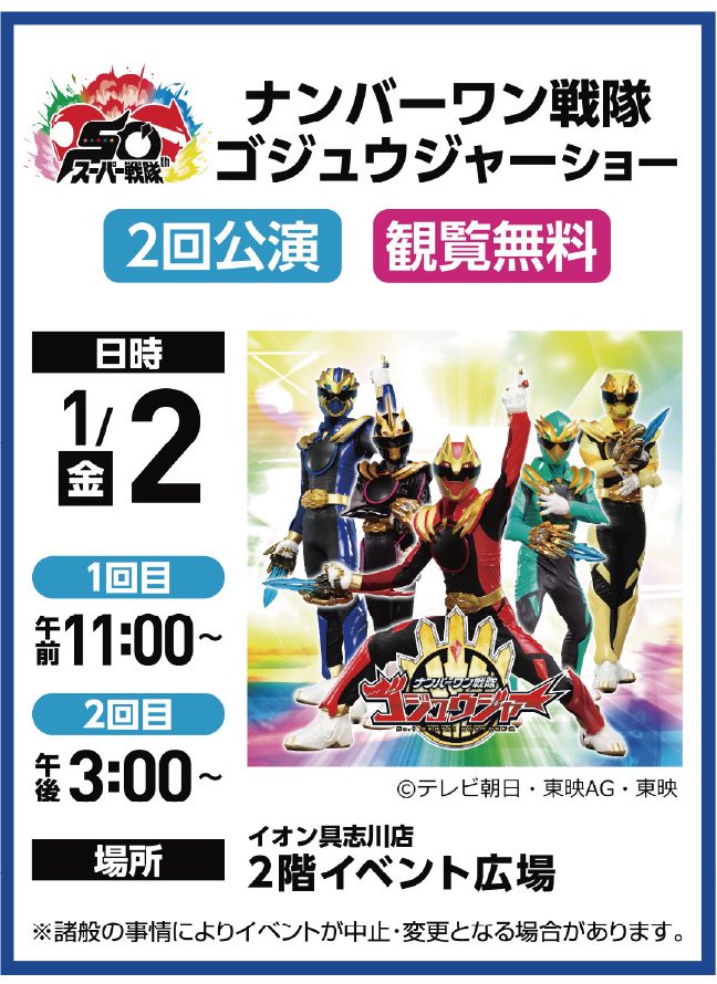 ★ナンバーワン戦隊 ゴジュウジャー ショー@具志川店・【1回目】開演:11時~・【2回目】開演:15時~・会場=イオン具志川店・2階イベント広場