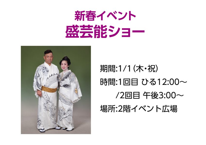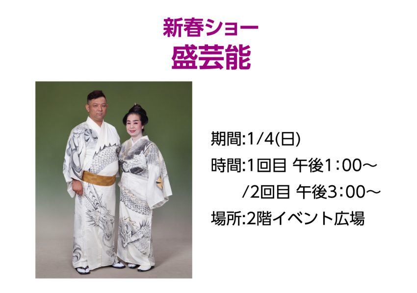 ★新春イベント 盛芸能ショー・【1回目】開演:12時~・【2回目】開演:15時~・会場=イオン具志川店・2階イベント広場