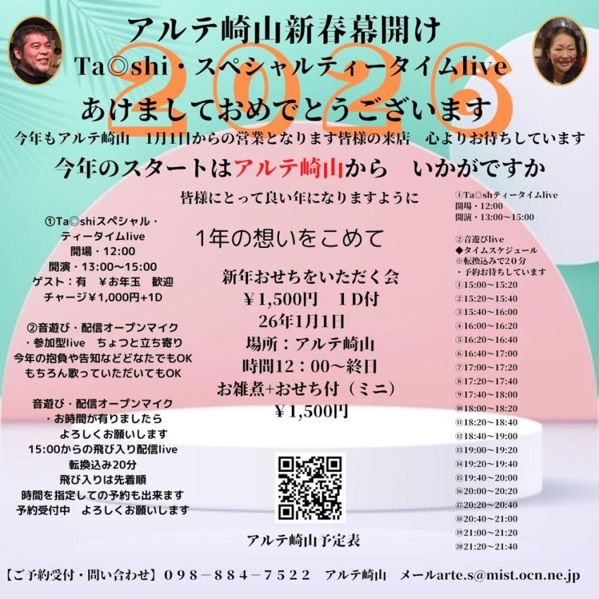 ★Ta◎shiスペシャル・ティータイムlive・開場:12時/開演:13時~終演:15時・出演=Ta◎shi・会場=アルテ崎山