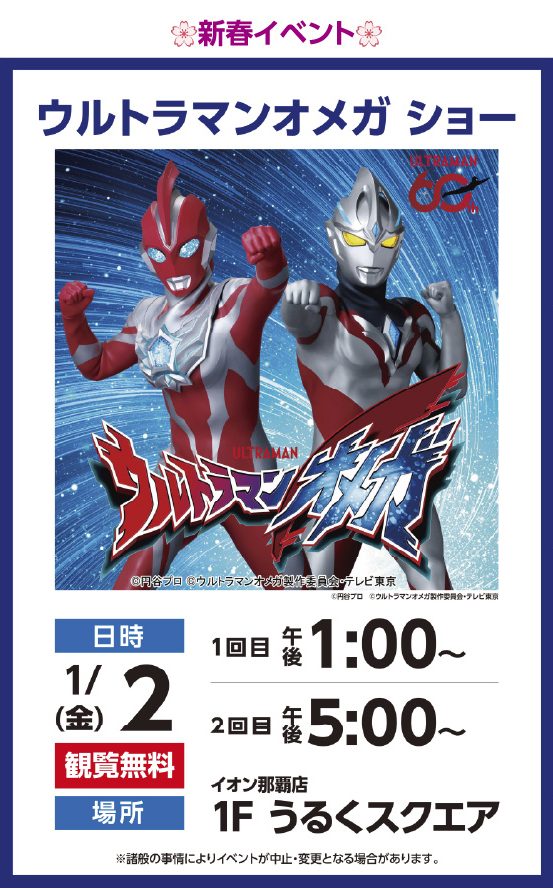 ★新春イベント ウルトラマンオメガ ショー・【1回目】開演:13時~・【2回目】開演:17時~・会場=イオン那覇店1階うるくスクエア