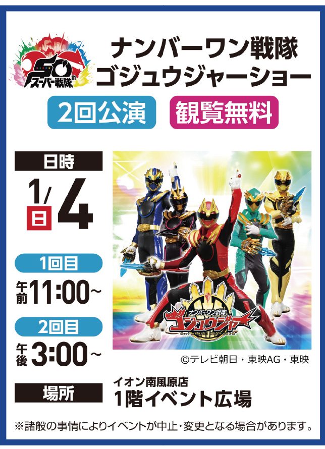 ★ナンバーワン戦隊 ゴジュウジャー ショー@南風原店・【1回目】11時~・【2回目】開演:15時~・会場=イオン南風原店1階 イベント広場