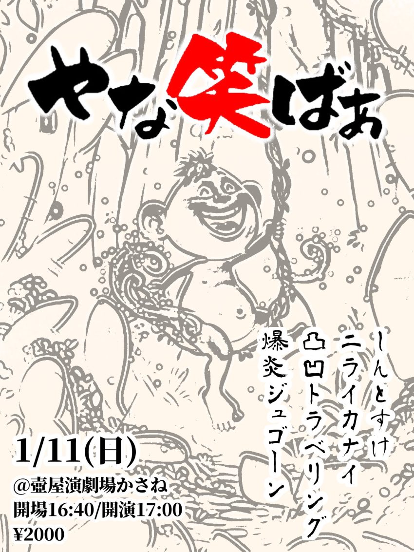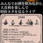 ★第3回 シン・スタンダップコメディ -新春妄想SHOW-・開場:19時/開演:19時30分・出演=上江洲修(Output)、めたりかクレ、小春日和ちゃん、孫六、ヨシキカーニバル、ハレル(鮭と梅)・スペシャルゲスト:せやろがいおじさん・会場=ライブハウスoutput