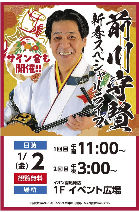 ★前川守賢 新春スペシャルライブ サイン会も開催!!・【1回目】開演:11時~・【2回目】開演:15時~・会場=イオン南風原店1階 イベント広場店