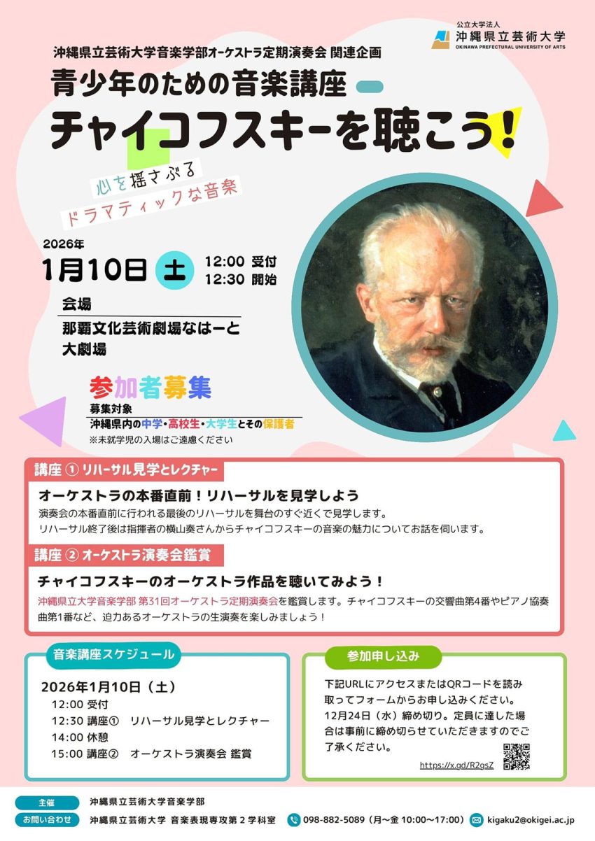 ★沖縄県立芸術大学・修士課程学位審査演奏会・出演=管弦打楽(院)・内容=独奏・会場=沖縄県立芸術大学奏楽堂ホール(首里当蔵キャンパス)