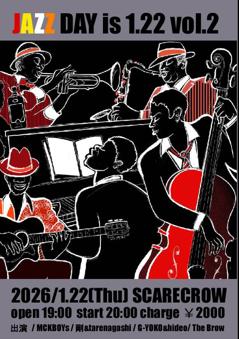 ★JAZZ DAY is 1.22 vol.2・開場:19時/開演:20時・出演=MCKBOYS 、剛&tarenagashi、G-YOKO & hideo、The Brow・会場=石垣市・JAZZ すけあくろ