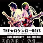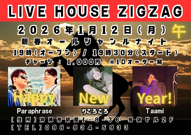 ★ABD新年会 2026・開場:16時・出演=また今夜s、番長、虐げられた民 OK、TAXIDRIVER OK、ワンチャイコネクション OK、音語(ウトゥグチ)、海野、ケンゴリアンズ、いっちょむ、and more!!・会場=ABD RECORD’S BAR(那覇市久米2-6-7 プラザエポックビル205)