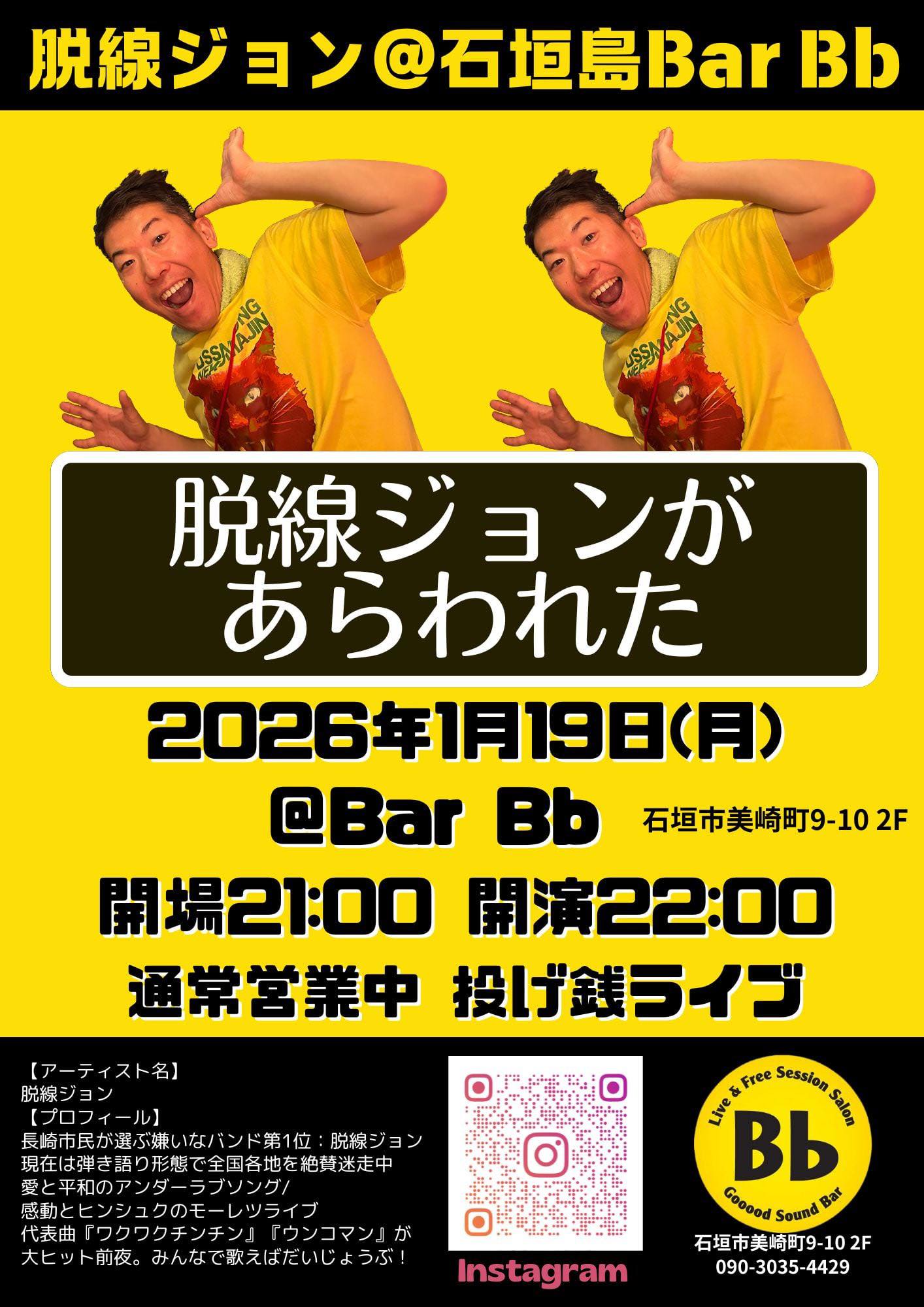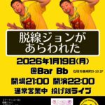 ★脱線ジョン再び・開場:19時/開演:19時30分・出演=脱線ジコン、アイパー、Maikeru・会場=BAR 醉狂連(那霸市壺屋1-417 B1)