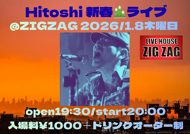 ★Hitoshi弾き語りワンマンライブ・開場:19時30分/開演:20時・出演=Hitoshi・会場=ライブハウスZIGZAG