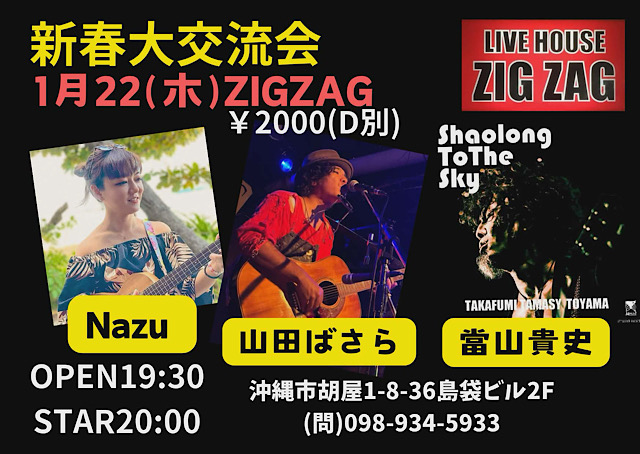 ★山田ばさら企画〜大交流会・開場:19時30分/開演:20時・出演=Nazu、山田ばさら、TAKAFUMI TAMASY TOYAMA 當山貴史・会場=ライブハウスZIGZAG