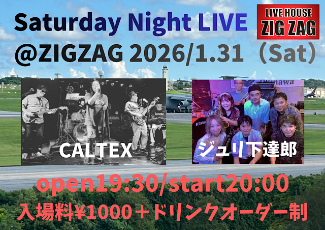 ★Saturday Night LIVE・開場:19時30分/開演:20時・出演=CALTEX、ジュリ下達郎・会場=ライブハウスZIGZAG