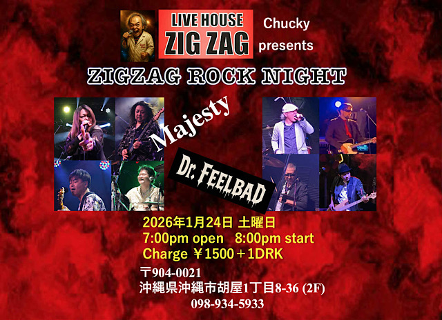 ★ZIGZAG ROCK NIGHT ロックライブ・開場:19時30分/開演:20時・出演=Majesty、Dr. FEELBAD・会場=ライブハウスZIGZAG