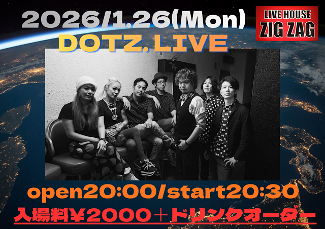 ★ダンスミュージックバンドDOTZ.・開場:20時/開演:20時30分・会場=ライブハウスZIGZAG