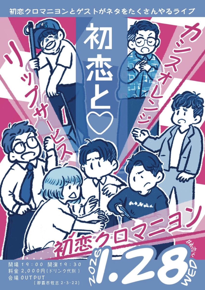 ★初恋と・開場:19時/開演:19時30分・出演=初恋クロマニヨン、リップサービス、カシスオレンジ・会場=ライブハウスoutput