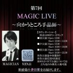 ★第7回マジックLIVE ~向かうところ手品師~・【昼公演】開場:12時/開演:12時30分・【夕公演】開場:15時30分/開演:16時・【夜公演】開場:19時/開演:19時30分・出演=ケンジ・会場=LIVE BAR あさお