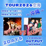 ★Output okinawa presents TOUR2026空海 沖縄・開場:18時/開演:19時・LIVE:ALLiCA・DJ:DJダイノジ大谷・OACT:ジャイコナイトフクオカ・会場=ライブハウスoutput