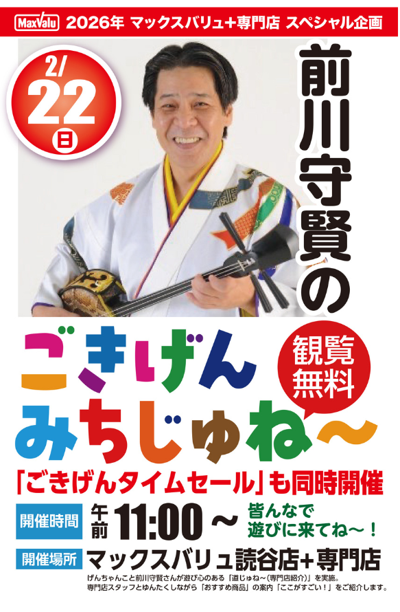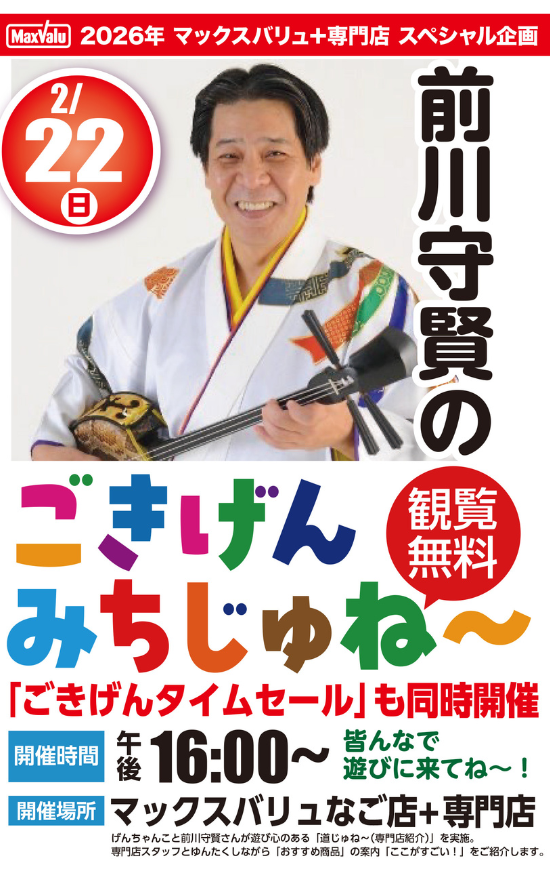 ★MIYAKOJIMA SOCCER FESTIVAL 2026・スペシャルライブ・開演:午後~・出演アーティスト=前川真悟(かりゆし58)with 久米ハルキ(OSAKA ROOTS)、THE ONEDOLLARS、GB DANCE STUDIO、Boogie Woogie Swing、んなまんす°、宮城 奈々・会場=JTAドーム宮古島(宮古島市平良下里2511−35)