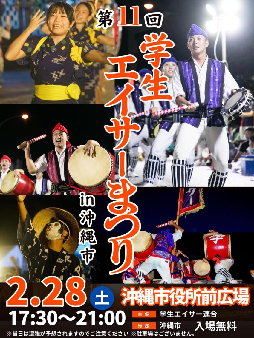 ★第11回学生エイサーまつり・17時30分~20時・会場=沖縄市役所前広場