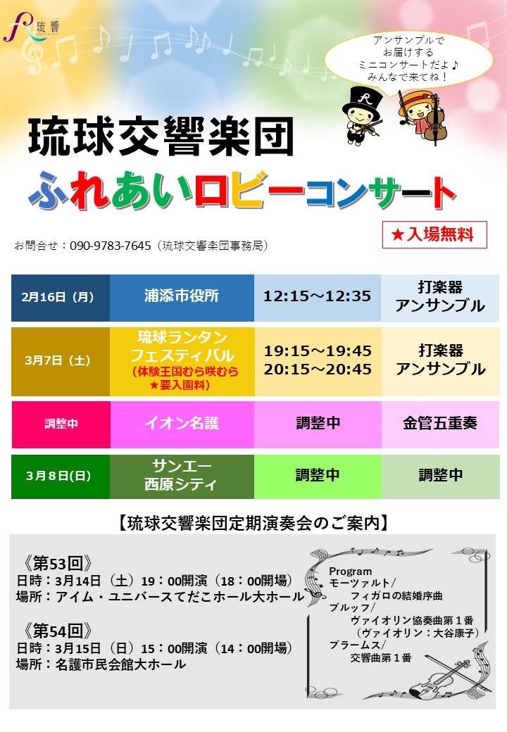 ★Output Revolution -Feburary- ・【1部】開場:11時10分/開演:11時30分・出演=RYUKYU IDOL、猫の眼に宇宙、EMPATHY、パピプペポは難しい・【2部】開場:15時40分/開演:16時・出演=STARDUST OKINAWA GIRLS、EMPATHYmパピプペポは難しい、猫の眼に宇宙・会場=ライブハウスoutput