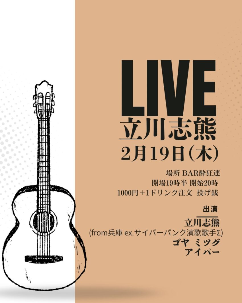 ★YUKIMASA MUSIC LIVE TOUR-2026-・開場:19時/開演:20時・出演=Yukimasa (From OSAKA)、新垣徳希、アイパー・会場=BAR酔狂連(那覇市壺屋1-4-17 B1)