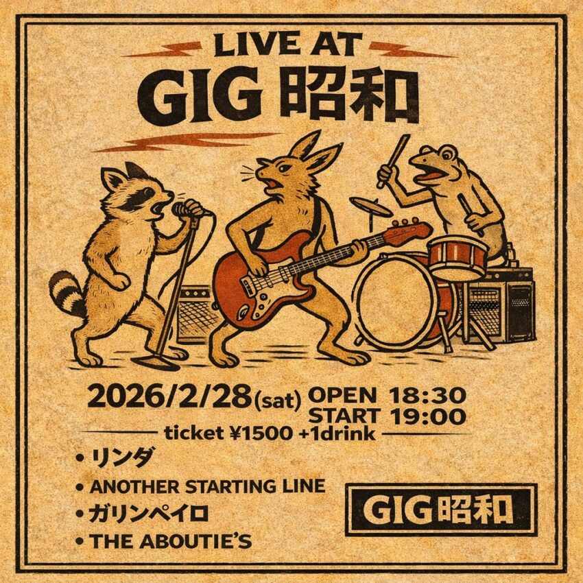 ★LIVE AT GIG 昭和・開場:18時30分/開演:19時・出演=リンダ、ANOTHER STARTING LINE、ガリンペイロ、THE ABOUTIE’S・会場=GIG昭和(那覇市泊3-7-14 国際貿易ビルB1F)
