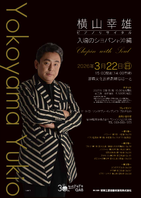 ★横山幸雄 ピアノリサイタル 入魂のショパン in 沖縄・開場:14時/開演:15時・会場=那覇文化芸術劇場なはーと