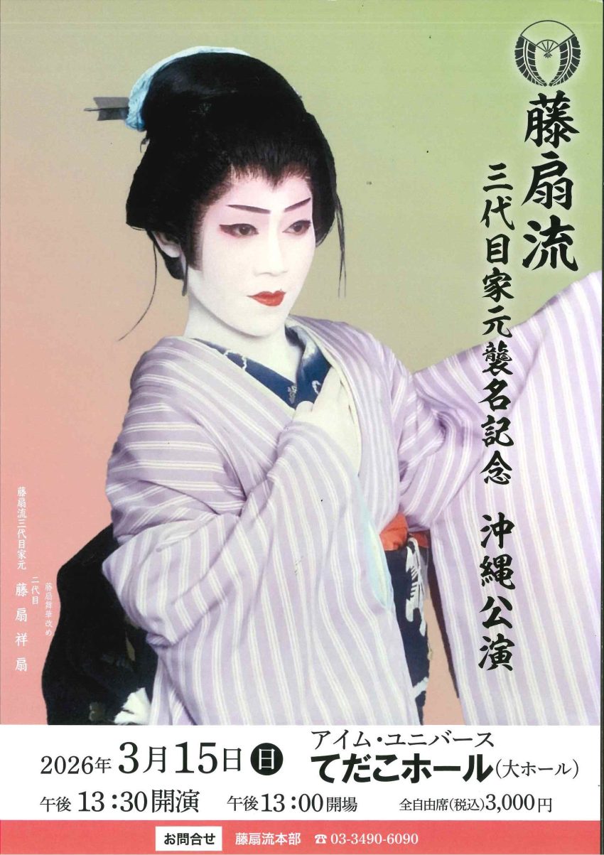 ★藤扇流三代目家元襲名記念 沖縄公演・開場:13時/開演:13時30分・出演=藤扇流三代目家元 藤扇舞華改め 二代目藤扇祥扇、他・会場=アイム・ユニバースてだこホール・大ホール