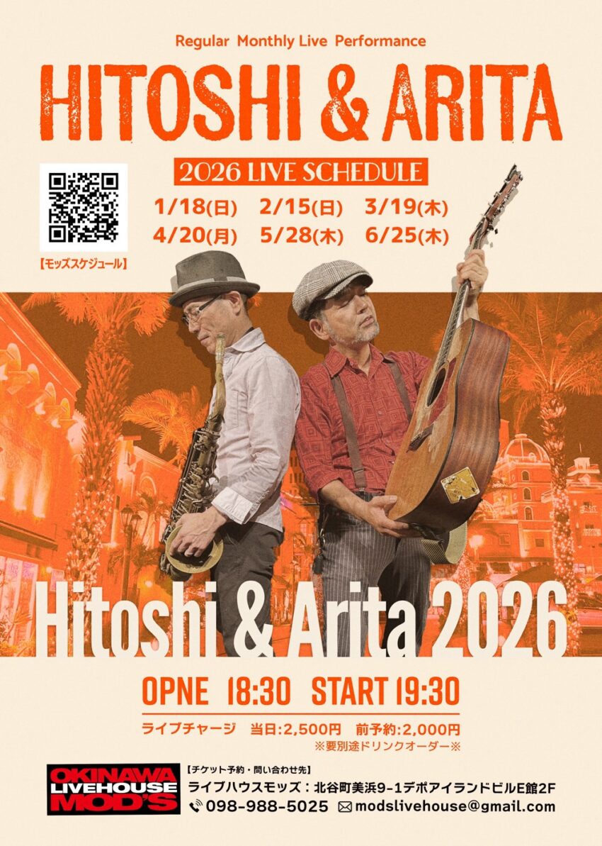 ★Hitoshi&Arita・開場:18時30分/開演:19時・会場=LIVE HOUSE MOD’S